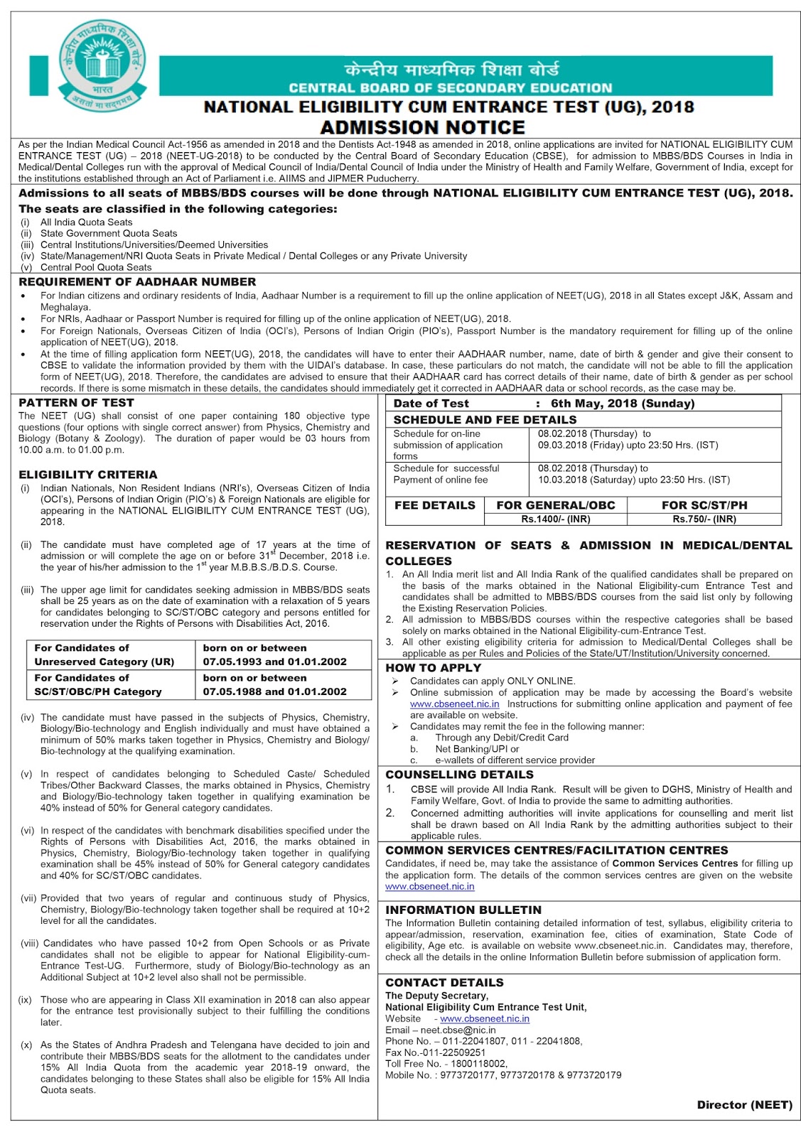 Candidates must keep the following information and documents ready before filling the application form of NEET 2018.